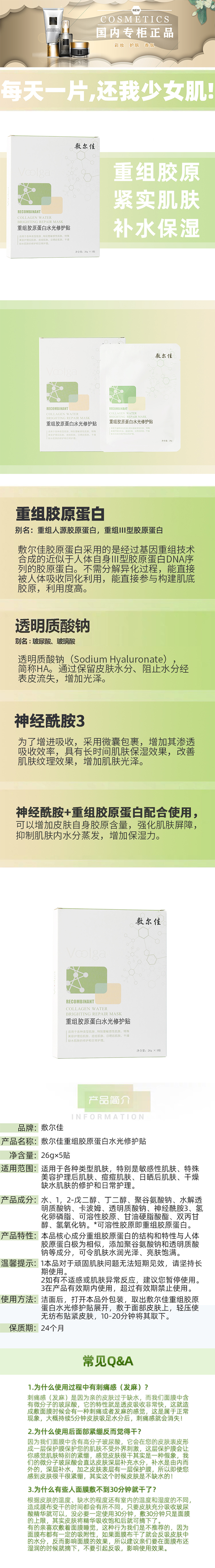 敷尔佳(白)胶原蛋白补水保湿面膜 5片装