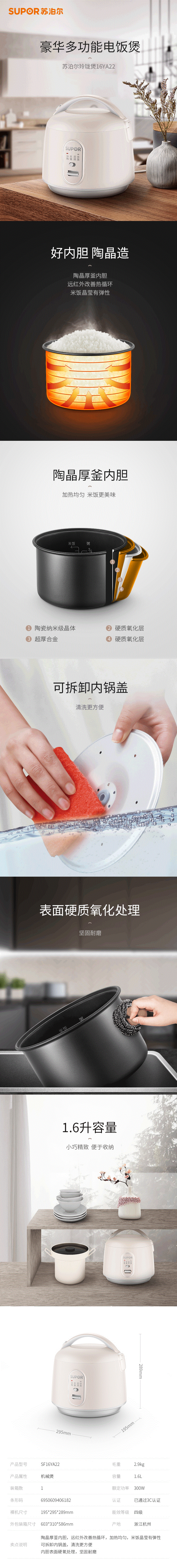 苏泊尔(SUPOR)迷你电饭锅电饭煲SF16YA22 1.6L