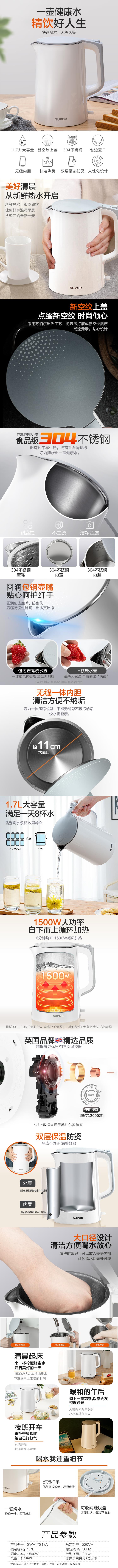 苏泊尔(SUPOR)电水壶1.7L全钢无缝内胆 SW-17S13A