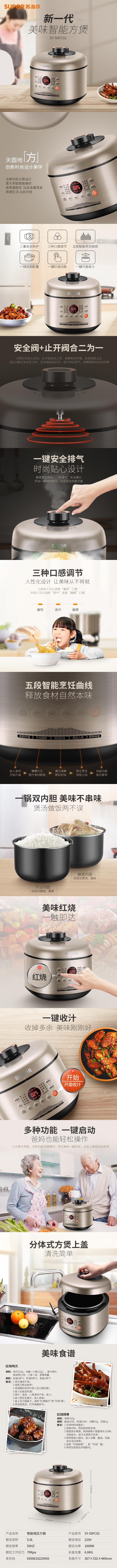 苏泊尔(SUPOR)电压力锅5L容量双内胆开盖收汁一键排气智能预约SY-50FC02