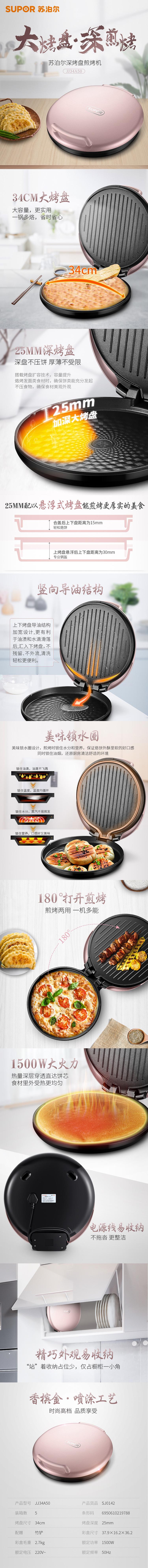 苏泊尔(SUPOR)ZMD安心系列 煎烤机 机械型 深烤盘系列 双面加热薄煎烤机烙饼锅 JJ34A50