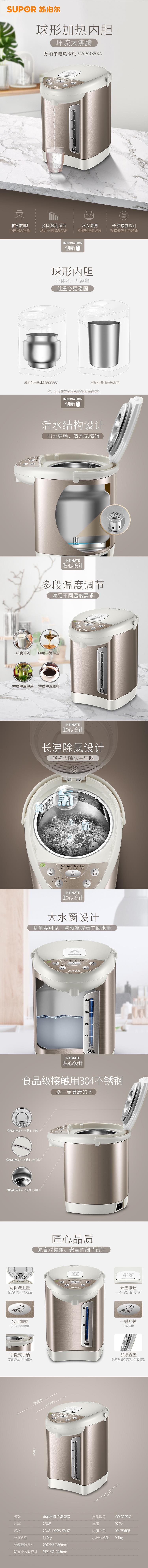苏泊尔 ZMD安心系列 电热水壶烧水壶 5L 304不锈钢开水壶 50S56A