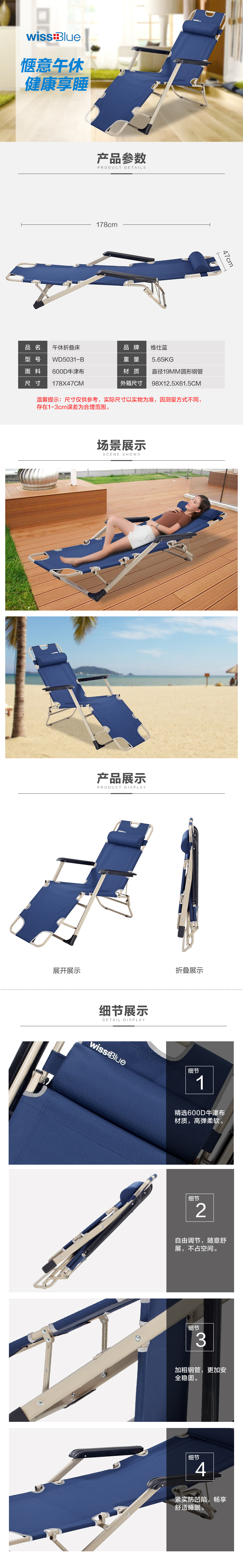 维仕蓝单人三用折叠床WD5031-B