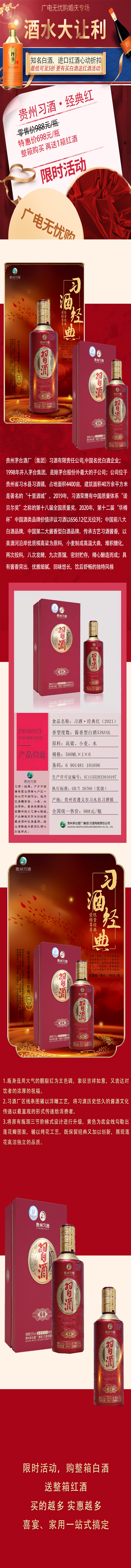 习酒经典红53%vol酱香型白酒500ml(仅限苏州范围配送)
