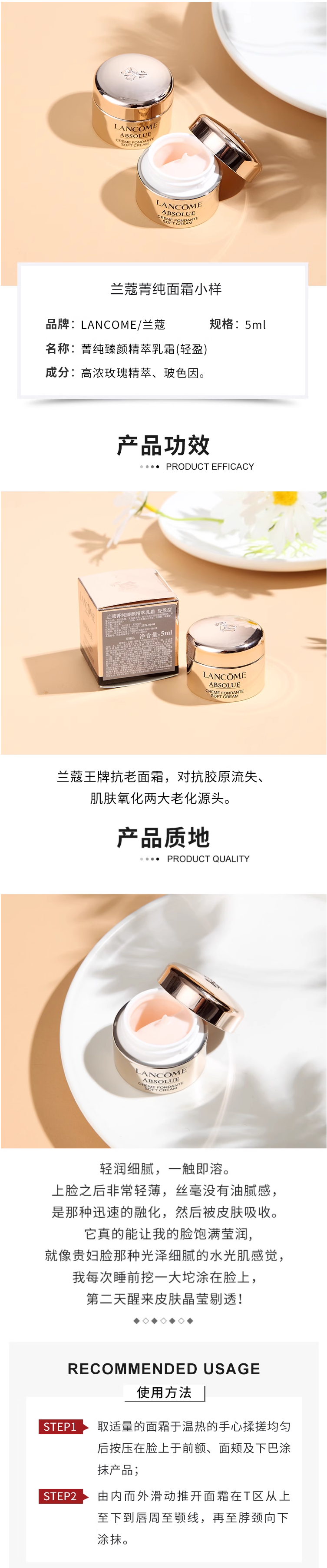 (2瓶装)兰蔻菁纯臻颜精粹乳霜小样5ml(轻盈)