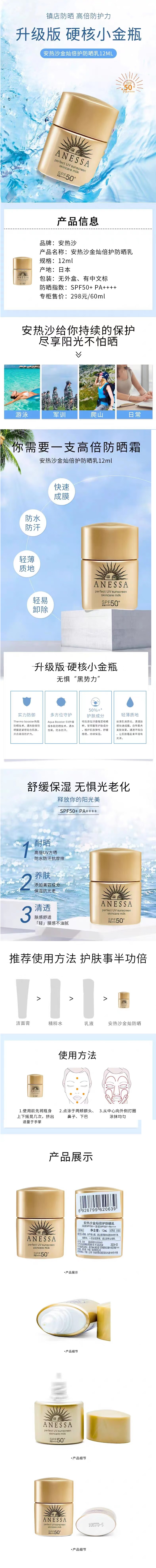 (3个装)安耐晒安热沙防晒霜旅行装12ml3