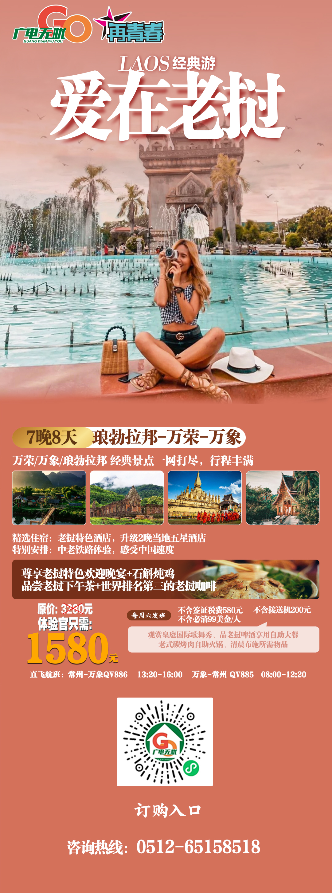 老挝7晚8天旅游体验官1580元/人
