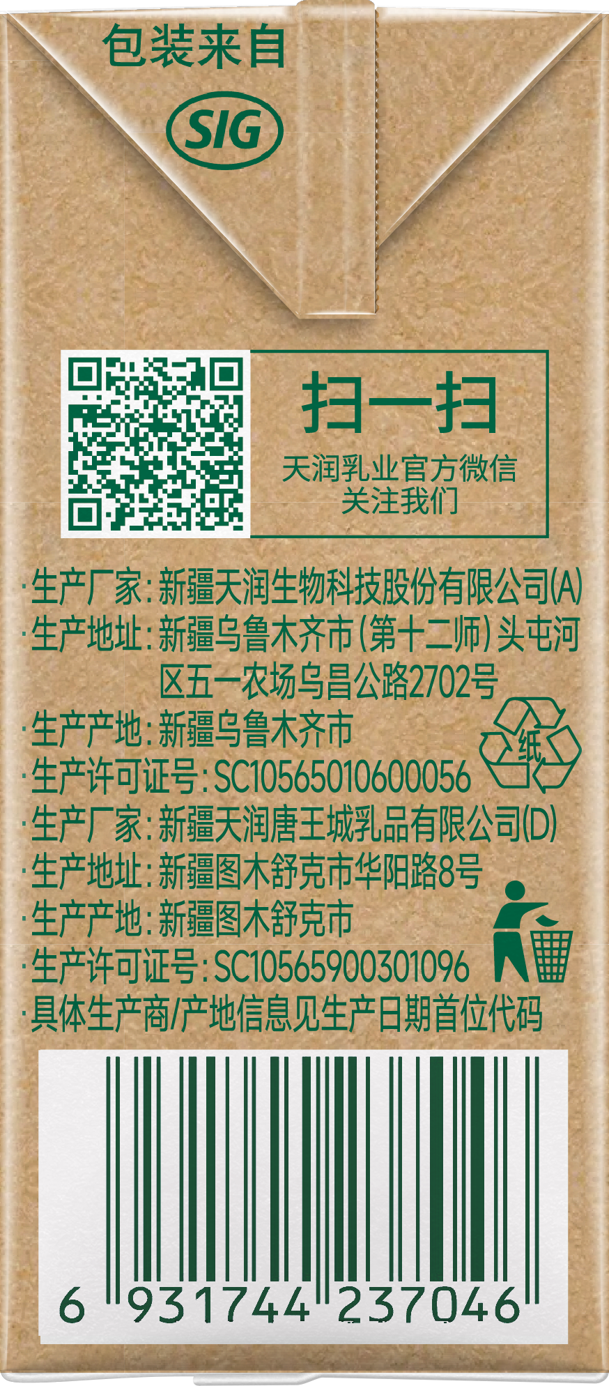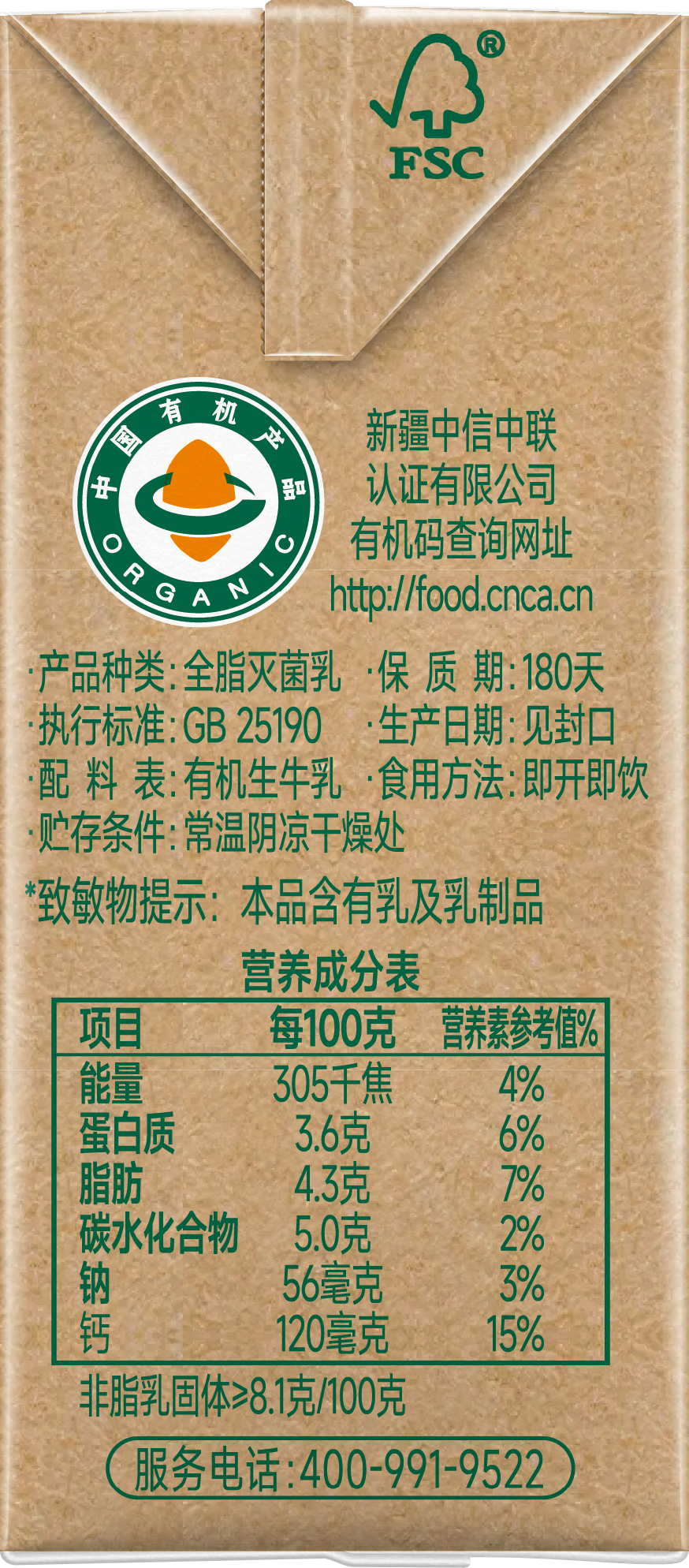 天润新疆雪山有机纯牛奶(康美砖125g*20)