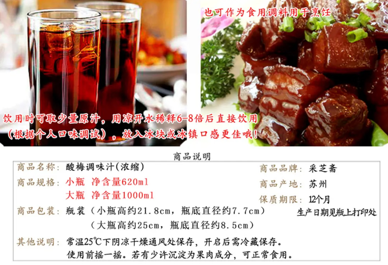 【江南甄选专属】苏州采芝斋酸梅汤酸梅汁调味浓缩汁夏日饮品饮料